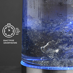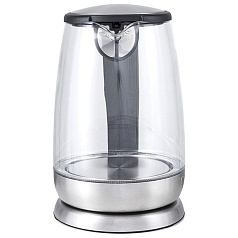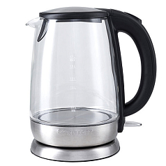 Чайник KITFORT КТ-619, 1,7 л, 2200 Вт, закрытый нагревательный элемент, стекло, серебристый, KT-619