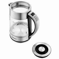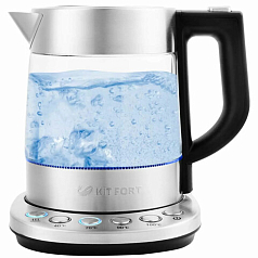 Чайник KITFORT КТ-690, 1,7 л, 2200 Вт, закрытый нагревательный элемент, LED дисплей, ТЕРМОРЕГУЛЯТОР, стекло, серебро
