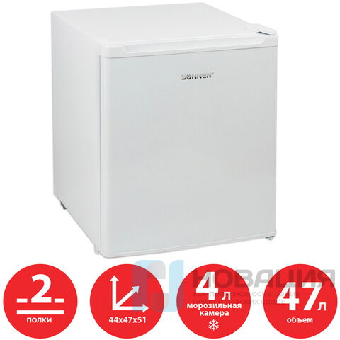 Внутри устанавливаются прочные полки, позволяющие организовать хранение продуктов. Удобство хранения также обеспечивают дополнительные отделения на двери холодильника.