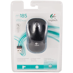 Мышь беспроводная LOGITECH M185, 2 кнопки + 1 колесо-кнопка, оптическая, черно-серая, 910-002238