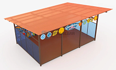 Теневой навес подходит для колясочных в ДОУ, тренировочных зон и велопарковок школе.