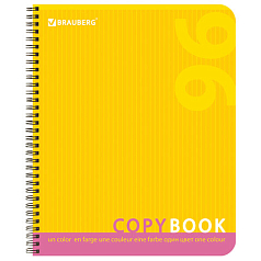Тетрадь А5, 96 л., BRAUBERG, гребень, клетка, обложка картон, ОДИН ЦВЕТ, 401878