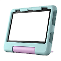 Столешница выполнена из пластика и крепится к металлическому каркасу винтами. Она не имеет кромки и пленки, а также оборудована углублениями для кружки и ручки. Уровень наклона столещницы регулируется до 15 градусов.