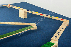 Состоит из деревянных модулей, которые произвольно скрепляются между собой. Пластины имеют различное покрытие и рельеф. Хождение по комплексу способствует тактильному развитию и тренирует умение держать равновесие.