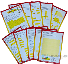 Элементы из прочного пластика устойчивы к намоканию. Закрепляются и хранятся в специальной папке, по 6 шт. на листе. При необходимости вставляются дополнительные страницы для новых карточек.