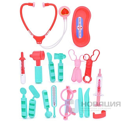 Набор для сюжетно-ролевой игры знакомит дошкольников с атрибутами врачебной профессии. Занятия с безопасными предметами позволяют избавиться от страха перед посещением поликлиники, узнать новое о деятельности доктора, запомнить названия и назначения приборов.