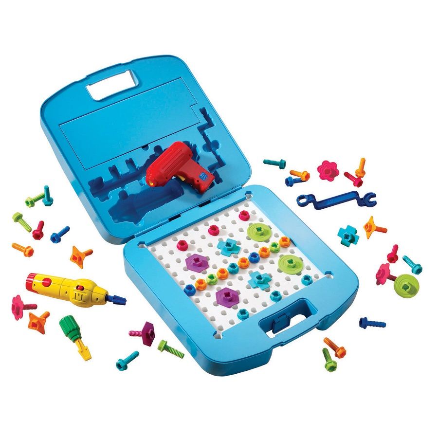 - стенкой с отверстиями для саморезов, при помощи которых крепятся разноцветные фигурки и столярные инструменты,