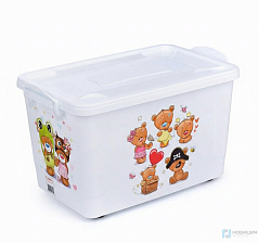 Контейнер для игрушек на колесах имеет объем 57 литров и это достаточно сэкономит место в группе если собрать в него игрушки. Для удобства контейнер оснащен колесами.