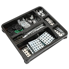 Металлический набор начального уровня используется на занятиях с дошкольниками и младшими школьниками. Элементы разработаны для развития мелкой моторики и логического мышления, укрепления памяти.
