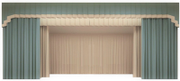 Центральный антрактно-раздвижной занавес состоит из двух синхронно движущихся частей, открывающих и закрывающих сцену. Верхний декоративный элемент — арлекин — расположен над сценой, украшает её и прячет технические конструкции. Кулисы, размещенные по бокам, визуально отделяют закулисье, скрывая декорации и исполнителей. Над кулисами находится падуга, маскирующая верхнее оборудование сцены. Завершают конструкцию задники, создающие общий художественный фон и способные скрыть вспомогательные конструкции.
