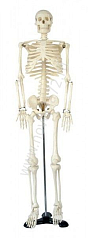 Модель в натуральную величину (высотой 170 см), изготовлена из пластмассы, с металлическими креплениями. Части модели, изображающие хрящевую ткань скелета, выполнены из мягкого полупрозрачного пластика. Установлена на роликовой пластмассовой подставке. Модель является разборной (можно снимать конечности скелета и крышку черепа).