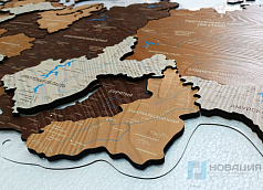 Деревянная карта России на прозрачном оргстекле, с подсветкой (борнео браун)