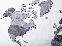 Деревянная карта мира на прозрачном оргстекле, с подсветкой (борнео грей)