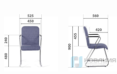 Кресло с пластиковыми накладками на подлокотниках используется в приемной, зале для презентаций, лаборатории. Стальной каркас защищается декоративным покрытием.