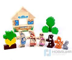 - 8 кукол: бык, поросенок, медведь, баран, петух, кот, лиса и волк.