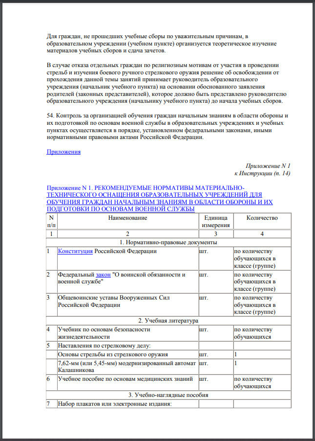 Оснащаем образовательные учреждения по Приказу Минобороны РФ и Министерства образования и науки РФ от 24 февраля 2010 г. №96/134 «Об утверждении Инструкции об организации обучения граждан Российской Федерации начальным знаниям в области обороны и их подготовки по основам военной службы..»