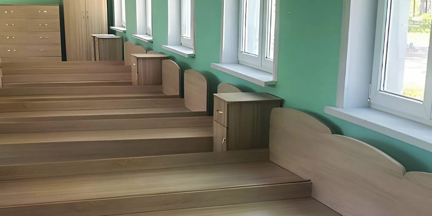 Оснащение детскими кроватями и тумбами от "Новации"