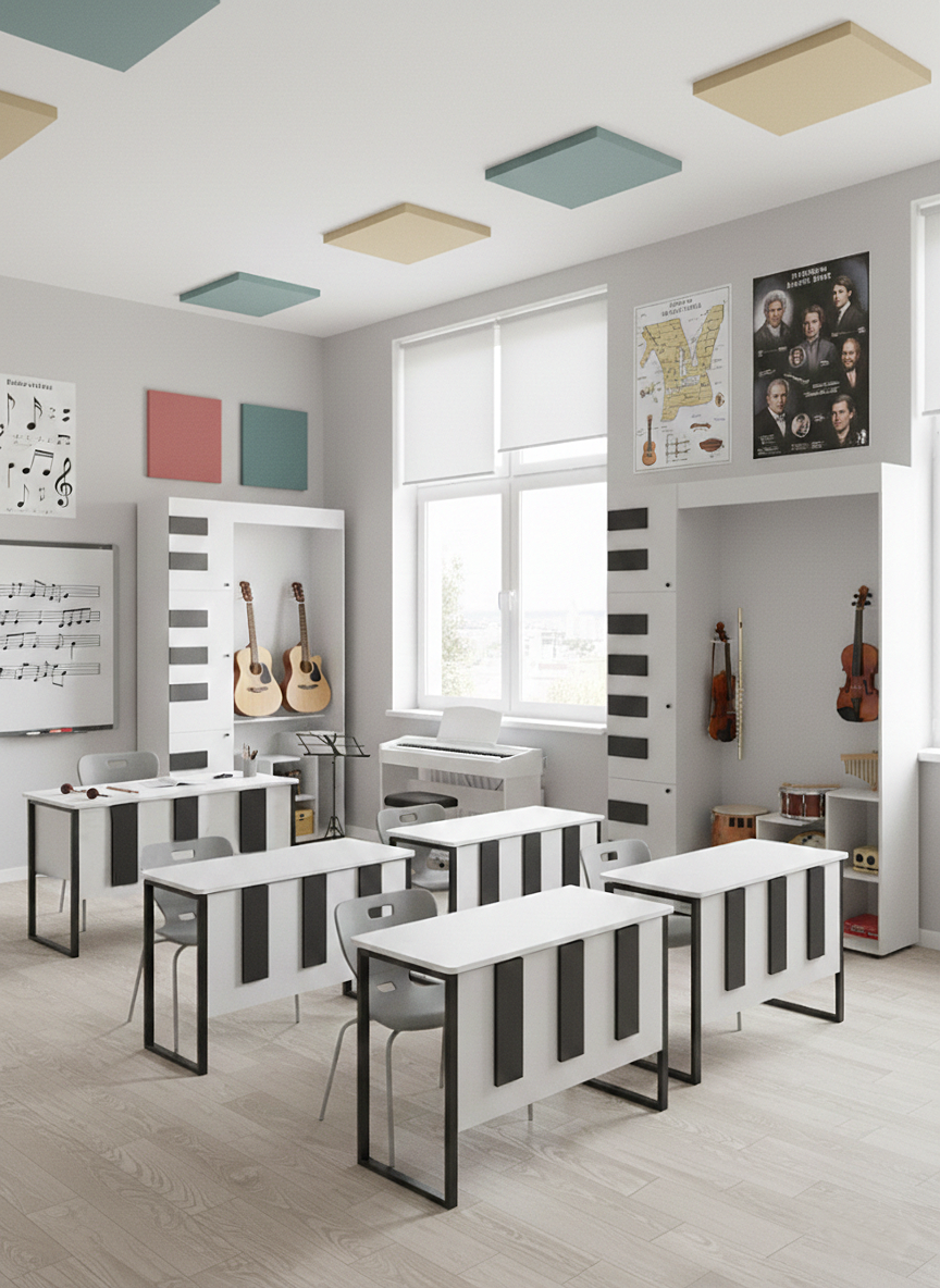 Современные решения для оснащения учебных кабинетов музыки, ИЗО и физики создают функциональную и эстетичную образовательную среду. Продуманная планировка и зонирование учитывают специфику каждого предмета, обеспечивая удобное размещение оборудования, материалов и рабочих мест.